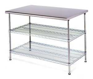 ![]() Consists of: Stainless Steel Table Top (2) - 54" rear chrome posts (2) - 33" front chrome posts (2) - 21" front chrome posts of overshelf (1) - 14"wide chrome wire overshelf (2) - Chrome wire undershelves* |
